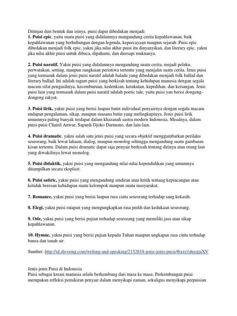 Jenis Jenis Puisi Berdasarkan Bentuk Zaman Dan Isi Berita Terkini