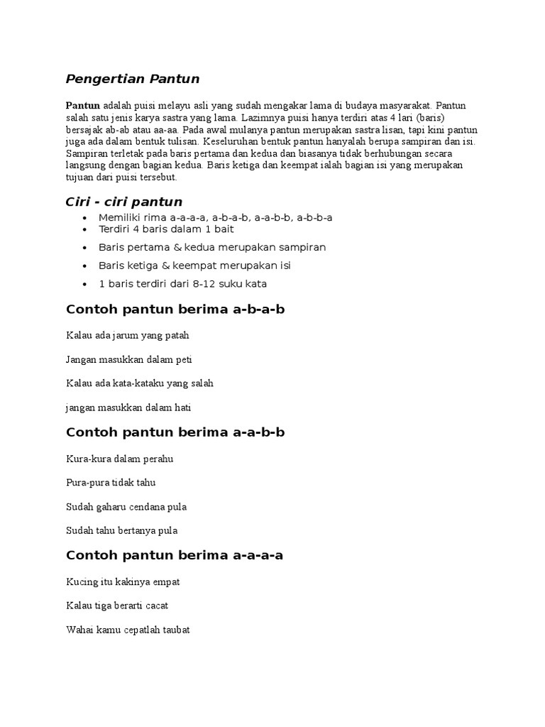Pantun Pengertian Jenis Jenis Ciri Ciri Dan Contoh Pantun