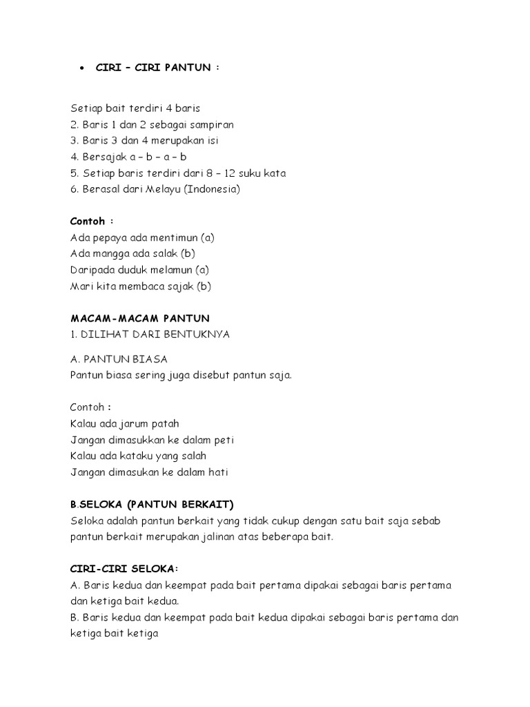 Penjelasan Pantun Beserta Ciri Dan Macam Macamnya