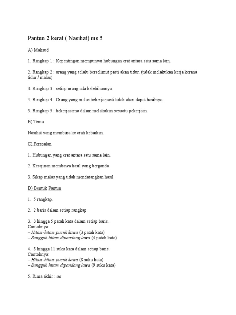 Bahasa Melayu Tingkatan 2 Pantun Dua Kerat Nasihat
